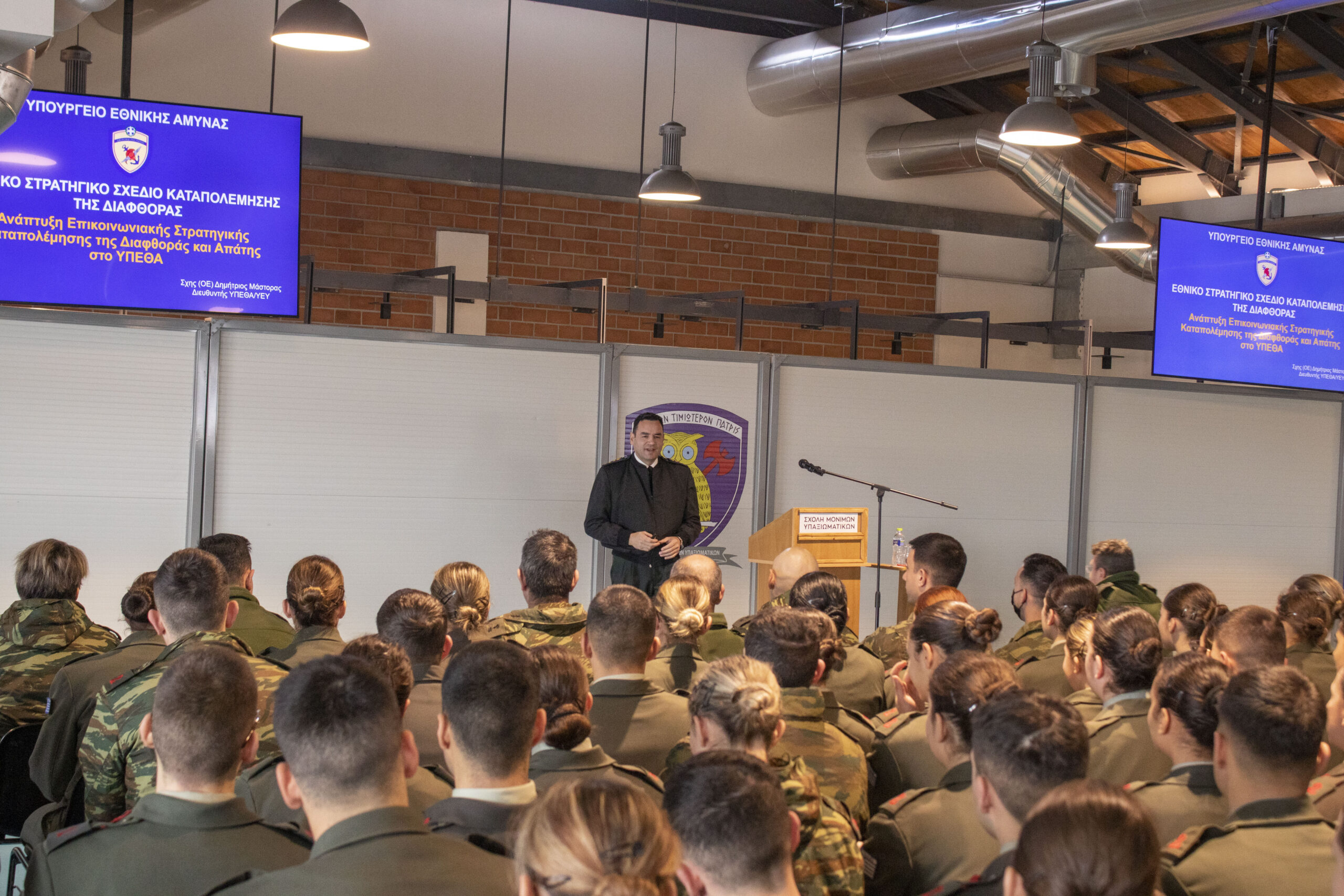 Την Παρασκευή 09 Ιανουάριου 2026 πραγματοποιήθηκε στους Σπουδαστές της Σχολής, ομιλία από το Σχη (ΟΕ) Δημήτριο Μάστορα με θέμα την καταπολέμηση της διαφθοράς στον Ελληνικό Στρατό και στόχο την ανάδειξη της σημασίας της διαφάνειας και της νομιμότητας στο πλαίσιο λειτουργίας των Ενόπλων δυνάμεων. Ο ομιλητής αναφέρθηκε στην έννοια της διαφθοράς, σε διάφορους τρόπους αντιμετώπισής της και τόνισε την ανάγκη ενίσχυσης των μηχανισμών ελέγχου. Μετά την ομιλία ακολούθησε συζήτηση με τη συμμετοχή των σπουδαστών.
